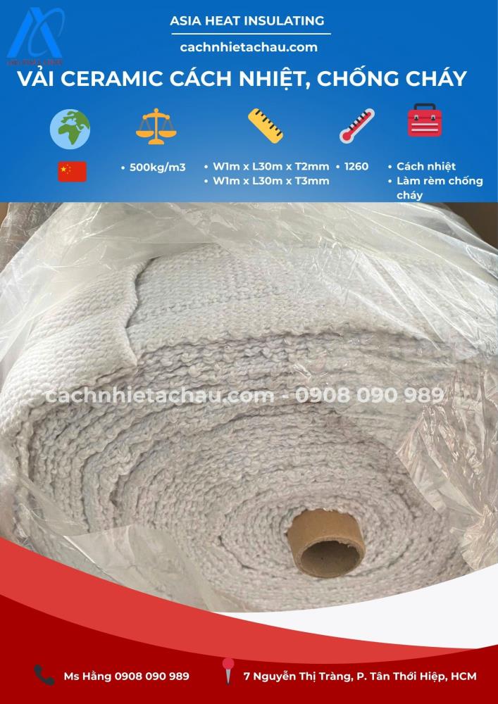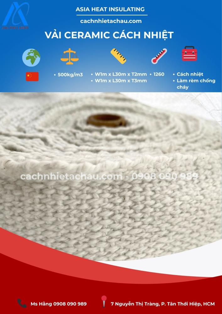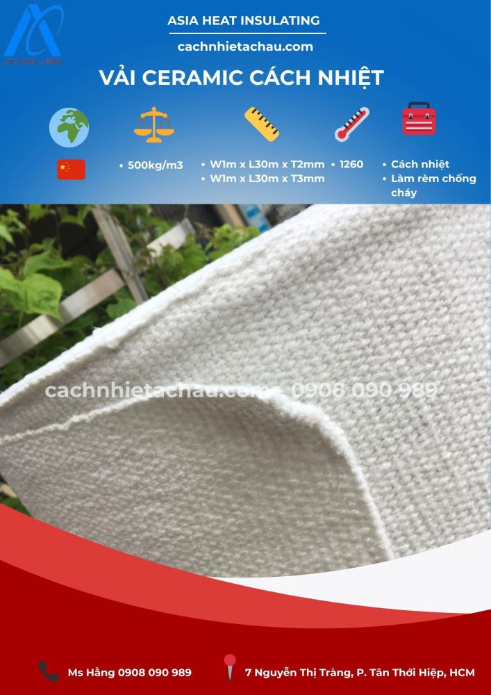 Vải sợi gốm ceramic là một loại vật liệu cách nhiệt cao cấp, được sản xuất từ sợi gốm tinh chế kết hợp với chất kết dính hữu cơ hoặc sợi gia cường như inox, thủy tinh. Sản phẩm này có khả năng chịu nhiệt cực cao, chống cháy, chống ăn mòn và được ứng dụng rộng rãi trong các ngành công nghiệp đòi hỏi khả năng chịu nhiệt khắc nghiệt.